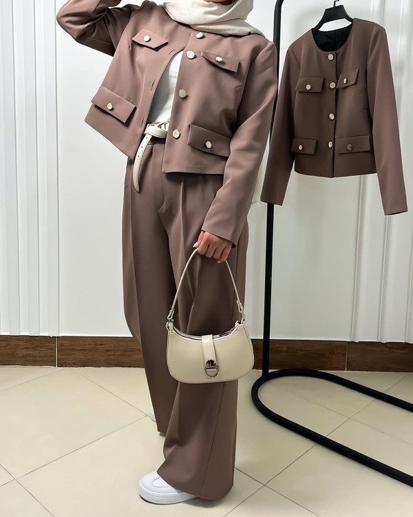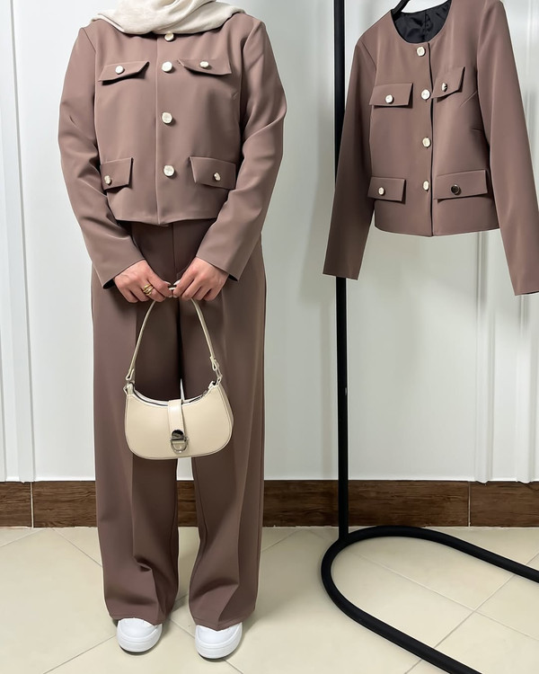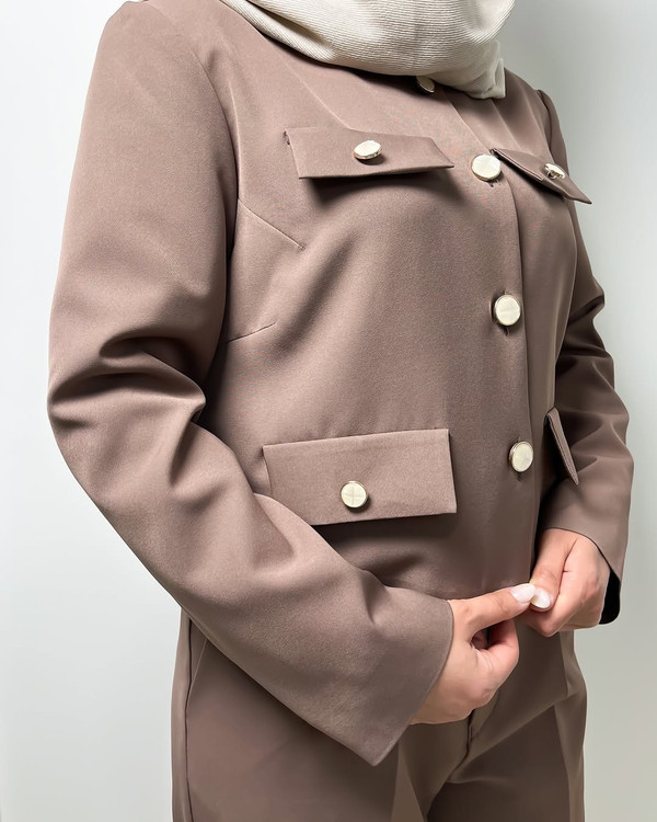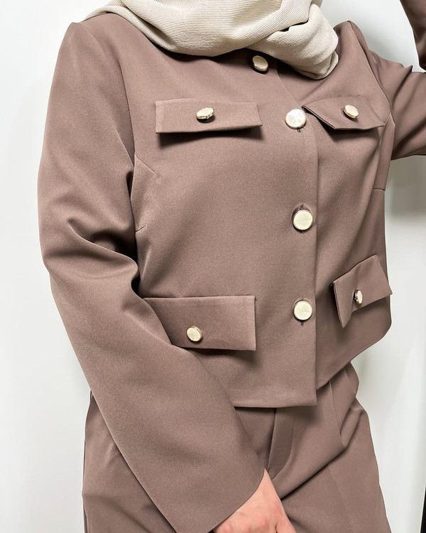 توضیحات : کت آسترکشی کامل، قابل سفارش با قد دلخواه، جیبهای کراپ کت بصورت نما طراحی شده