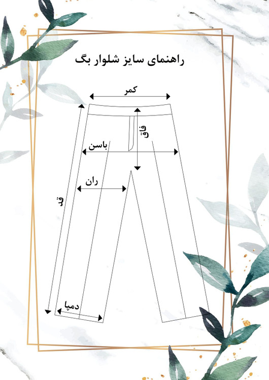 سایزبندی : کراپ کت فری سایز شلوار بگ دارای سایزبندی مطابق جدول راهنمای سایز