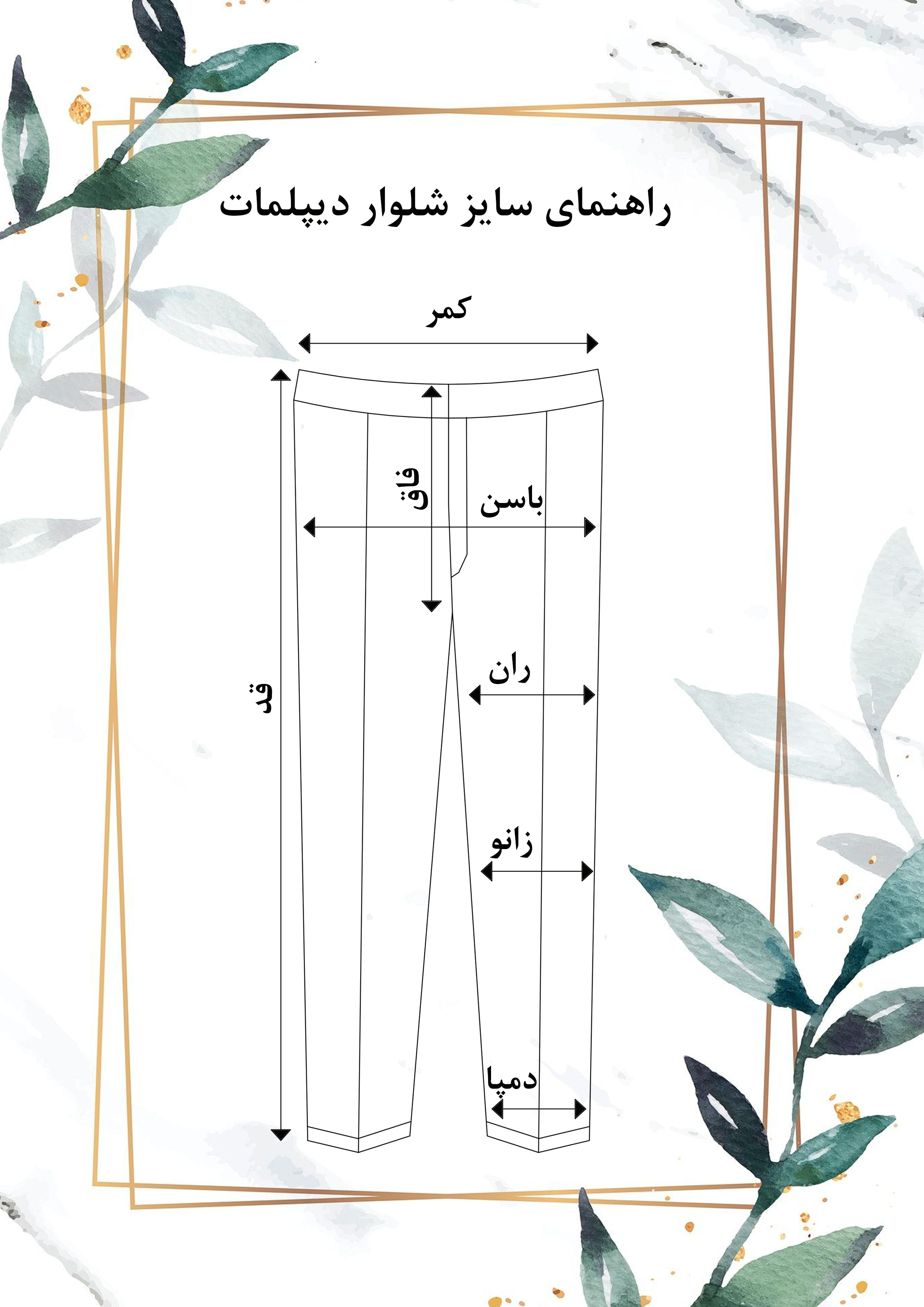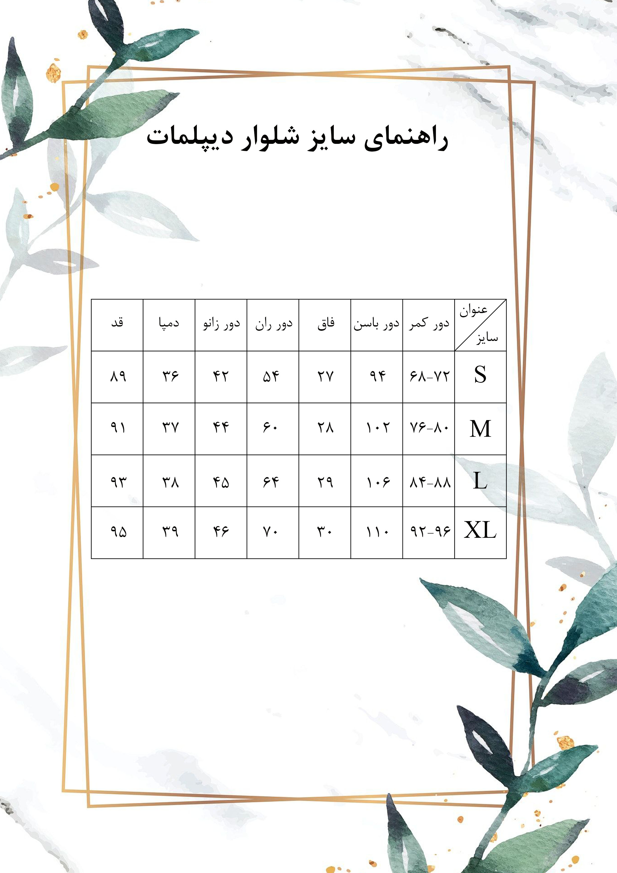 سایزبندی: کت فری سایز 1 و 2 جلیقه و شلوار دارای سایزبندی مطابق جدول