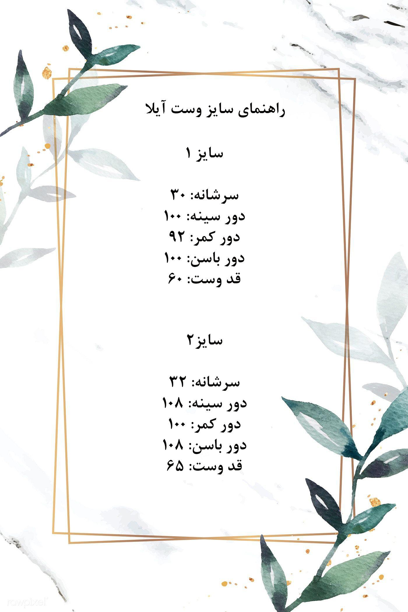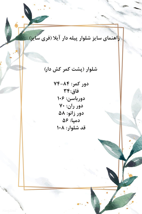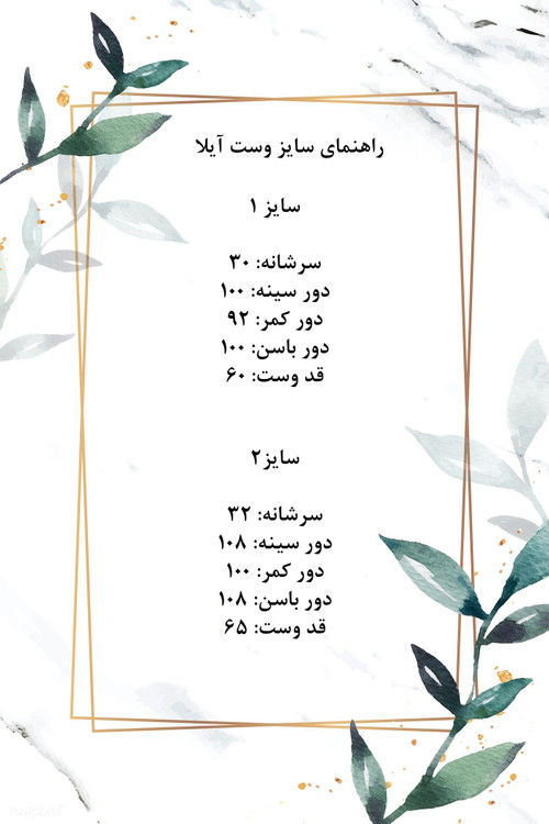 سایزبندی: وست فری سایز 1 و ۲ / شلوار فری سایز