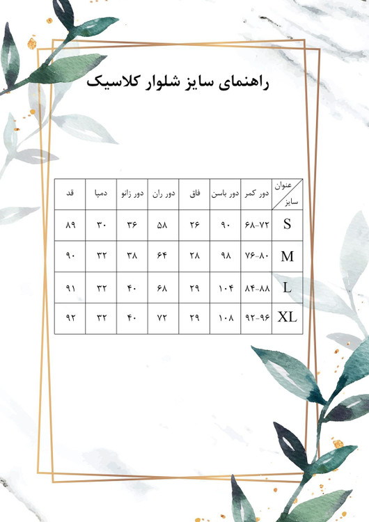 سایزبندی: مطابق جدول راهنمای سایز